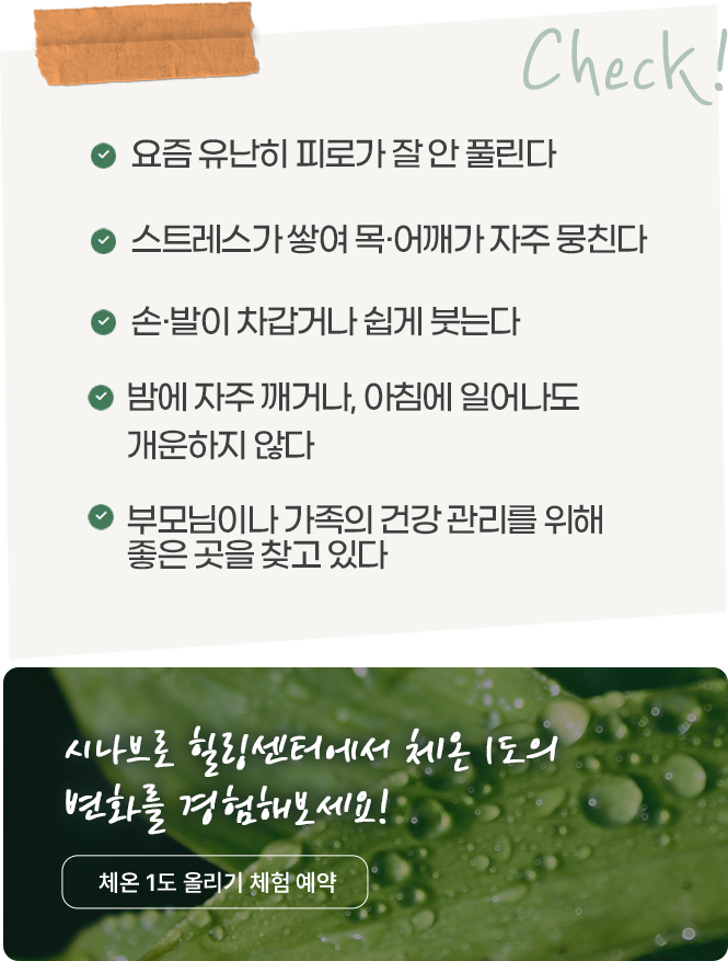 따뜻한 온기로 부드럽게 몸을 치유하세요.