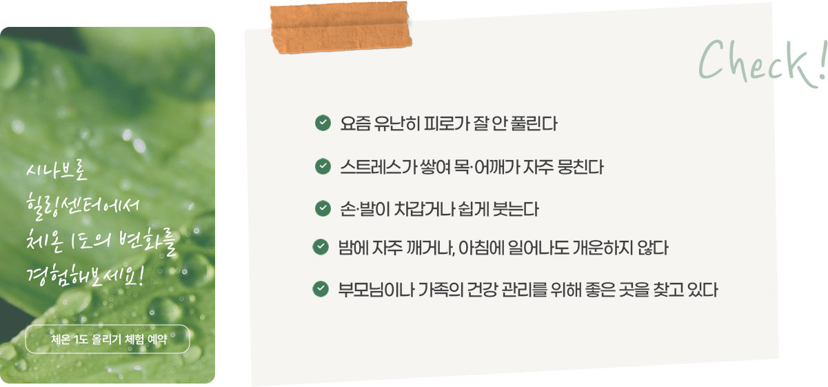 따뜻한 온기로 부드럽게 몸을 치유하세요.